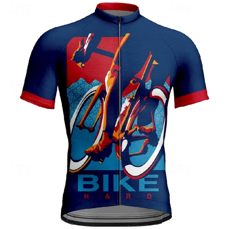 Men’s Cycling Jersey Graphic Short Sleeve Bike Tee Tshirt Jersey with 3 Rear Pockets Mountain Bike MTB Quick Dry Anatomic Design Wicking Breathable Sports Navy Blue Blue Clothing Apparel