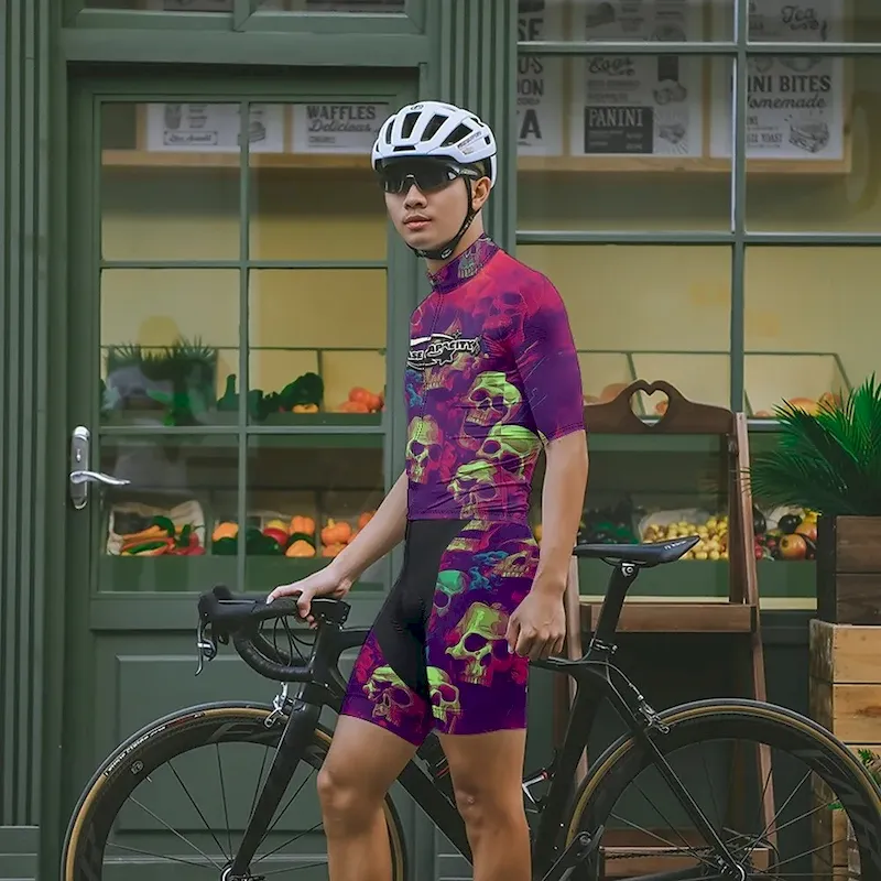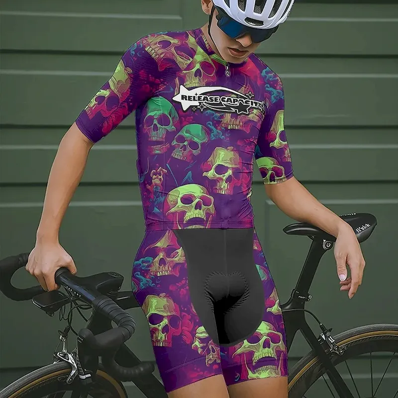 Men’s Cycling Jersey Skull Short Sleeve Bike Tee Tshirt Jersey with 3 Rear Pockets Mountain Bike MTB Quick Dry Anatomic Design Wicking Breathable Sports Violet Black Dark Purple Clothing Apparel