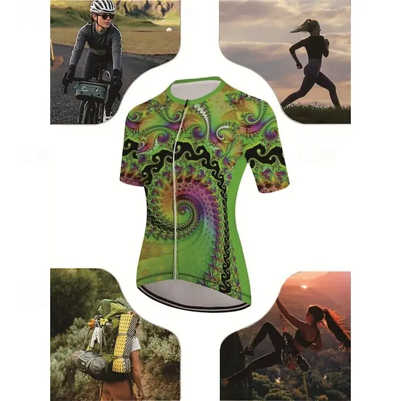 Women’s Cycling Jersey Paisley Short Sleeve Bike Tee Tshirt Top with 3 Rear Pockets Mountain Bike MTB Road Bike Cycling Quick Dry Front Zipper Wicking Sports Green Clothing Apparel