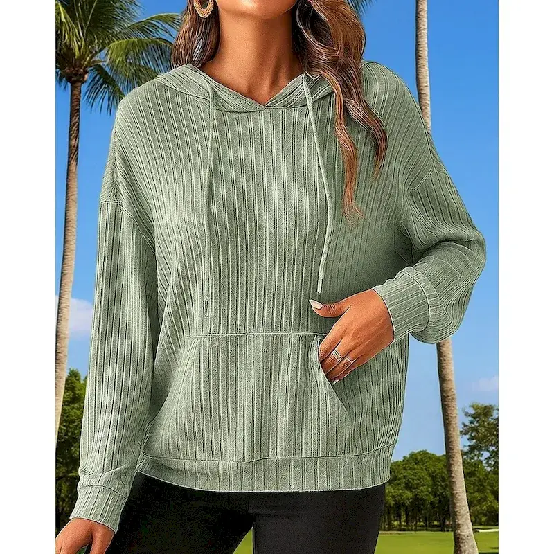 Women’s Pullover Sweatshirt Casual Hooded Sweater Drawstring Pocket Long Sleeve Top Athleisure Fall Solid Colored Sun Protection Windproof Outdoor Running Sportswear Activewear Green