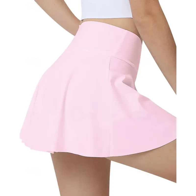 Women’s Solid Colored Tennis Skirts with Shorts Ruched Moisture Wicking Breathable Tennis Golf Pickleball Black White Pink Tennis Clothing